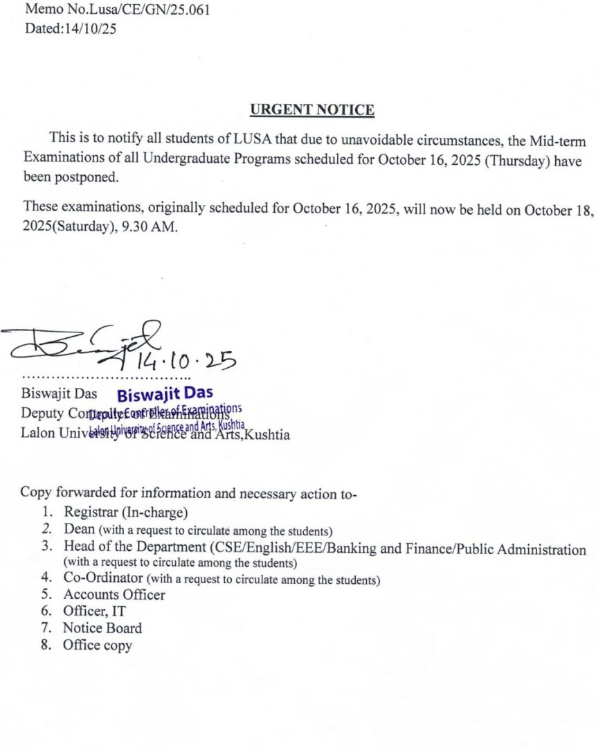 শারদীয় দুর্গাপূজা ও পবিত্র ফাতেহা-ই-ইয়াজদহম উপলক্ষে ছুটি প্রসঙ্গে